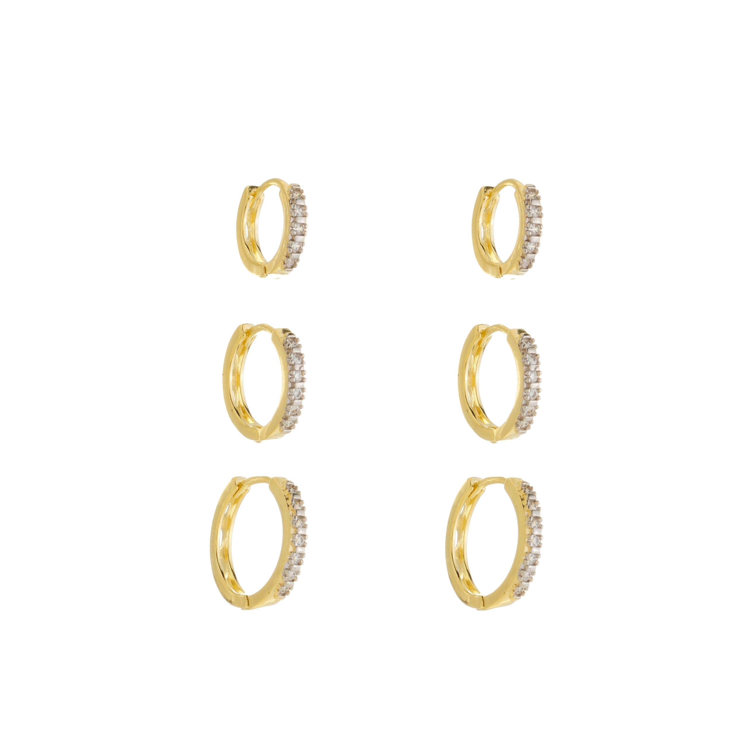 O Trio de Argolinhas Cravejadas Banhado em Ouro 18k é aquele conjunto essencial que toda mulher precisa ter.